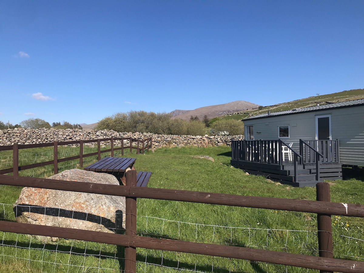 Static caravan on the edge of the Snowdonia National Park. Stunning panoramic views of the mountains, located on a peaceful smallholding. Central location between the towns of Caernarfon (15 mins) and Porthmadog (20 mins). The nearest beach is Dinas Dinlle (15 mins). The static is in its own fenced paddock and there is plenty of room for children. The static is also dog friendly. Great walks on your doorstep - this is an ideal base from which to explore the area, or simply get away from it all.