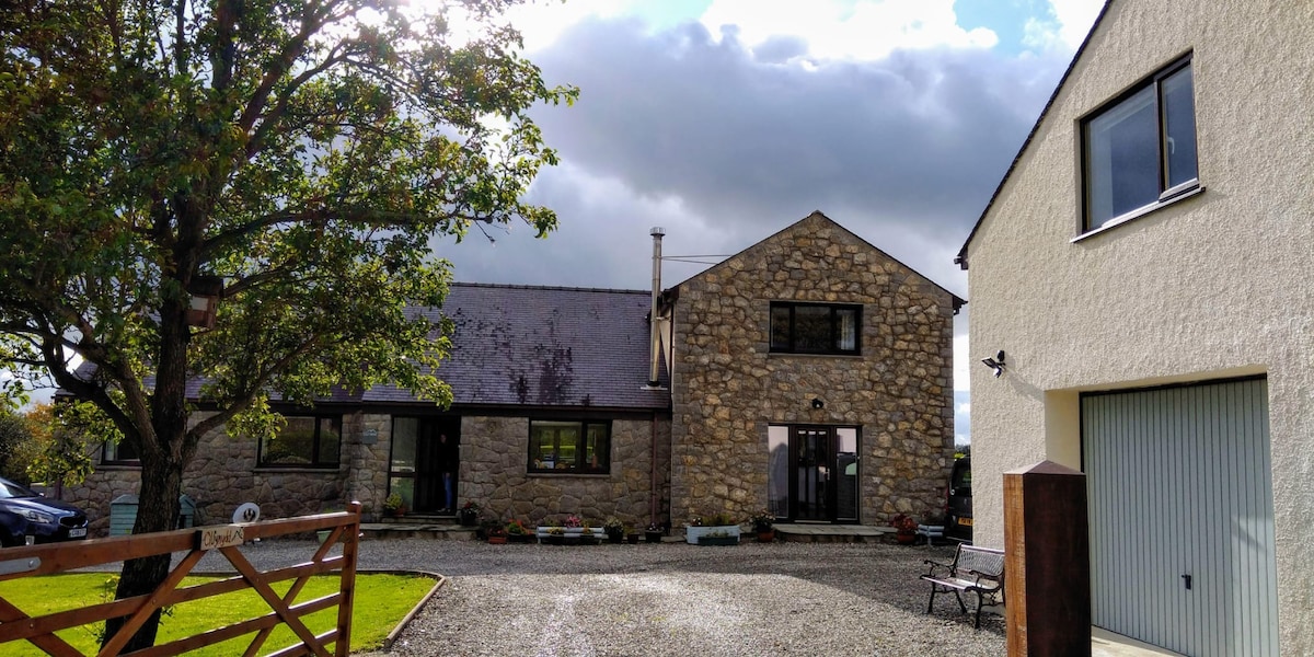 Enjoy a relaxing break away from it all in our dreamy Snowdonia Den. A delightful 1st floor, light and airy self-catering studio apartment between the villages of Rhosgadfan & Carmel. Surround yourself with panoramic views of the mountains and coastline from your own private garden. Ideal for a romantic break or a de-stress getaway. Far enough away from the crowds to feel remote, but within easy access of the villages & towns of the Llyn Peninsular and surrounding areas. Recharge and revive!