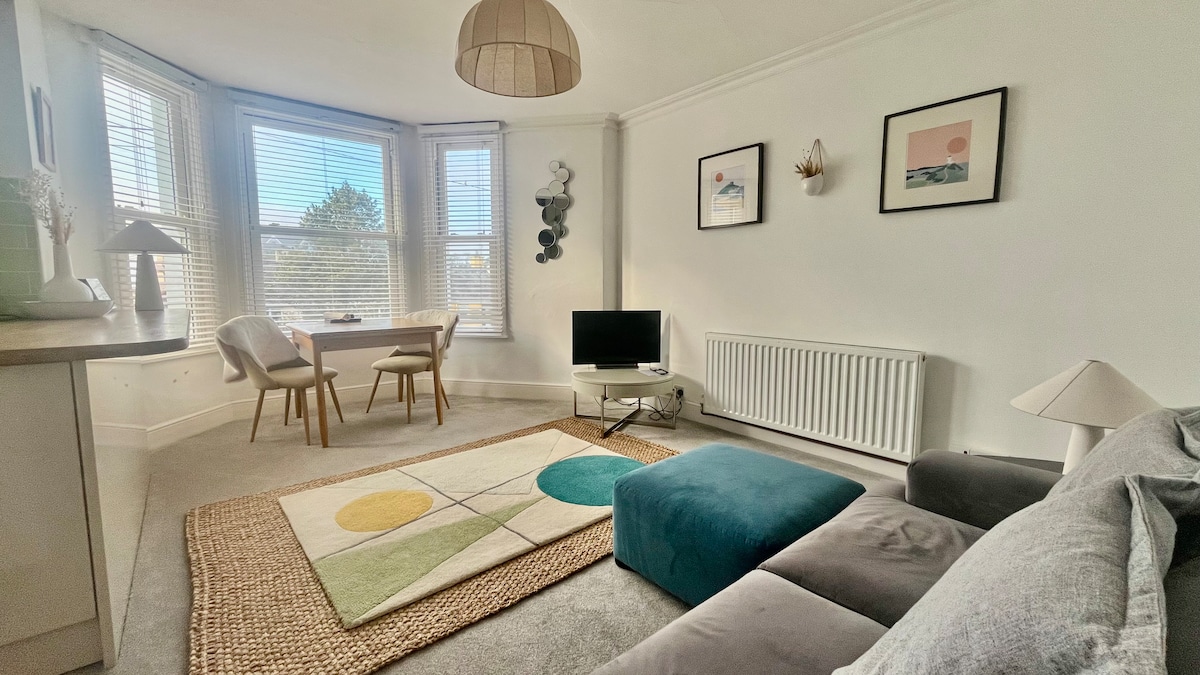 "Beachcombers" Barmouth - Now being offered to the holiday rental market by a 4* rated "Super Host" - this beautiful Victorian GROUND FLOOR apartment is located on Marine Parade right opposite Barmouth Beach! The property comfortably sleeps 4 with 2 bedrooms and 2 bathrooms. The apartment boasts some lovely features including high ceilings; original feature fire place. Stunning coastal décor; 43" Flat screen Smart Freeview+ TV & DVD with BT HALO WIFI. PETS are WELCOME!