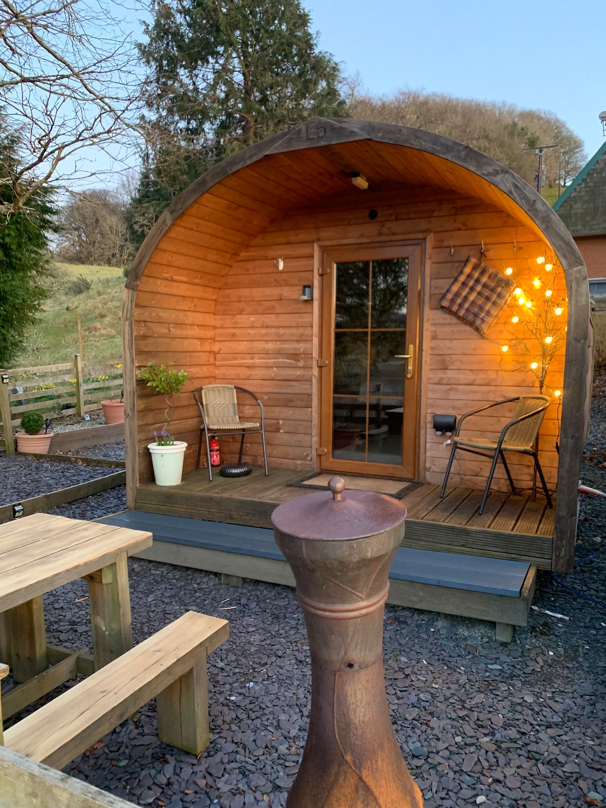 Situated in the grounds of “Caerau Gardens”, a charming and unusual bolt hole for a couple. With under-floor heating, a Sauna and a full cinema system with screen and a stunning audio system from Monitor Audio. The surroundings are wonderful, we even have our lake for fishing, swimming or perhaps kayaking. Sorry no pets or children Otherwise The Hovel? https://abnb.me/E51Vz3SGL9 If you have a small child or two or like a spare bedroom. No sauna but proper stairs, a cinema and wood burner.
