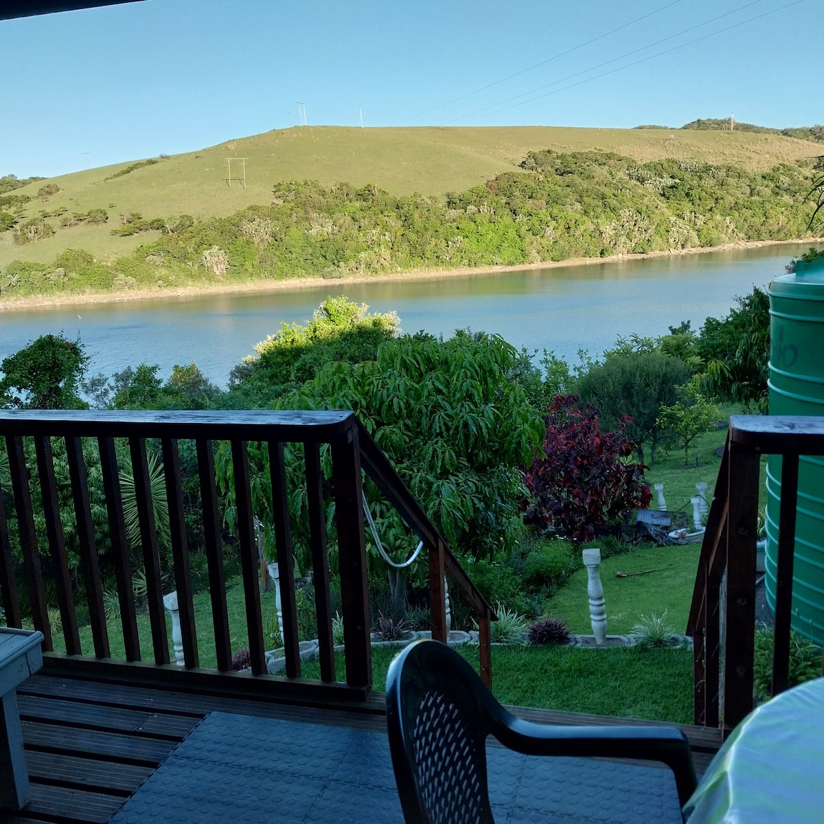 Sunny, white double storey holiday home in the safe African haven of Morganbay. Panoramic views from the expansive deck which overlooks the lagoon/nature reserve( teeming with exotic African birdlife) Sip your sundowner whilst reclining in a floating chair or hammock. Each room is tastefully decorated with local crafts, percale white linen and a ceiling fan. 6 minute stroll to the pristine dog friendly beach. Pool table, darts, DSTV, board games, magazines. NB: RATES ARE PER PERSON SHARING