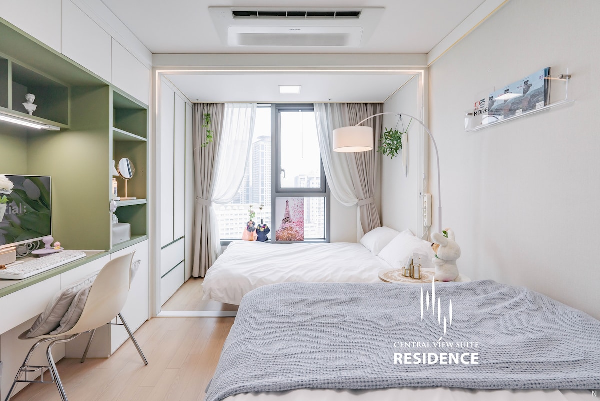 【新酒店】两卧室,位于首尔市中心,适合家庭/朋友旅行,植物套房