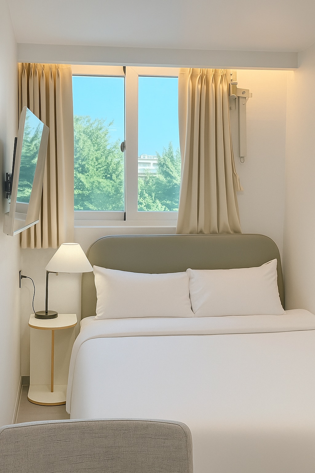 🏠 Pogn Hapjeong 포근 합정 *25년 open & 화장실 포함 전객실 리모델링 *호텔식 구조로 개인 객실 및 화장실 사용 / 창문 있음 *전객실 금연 (별도 흡연공간 3층 외부에 위치) *201호 1인 전용 객실 #위치 합정역 & 망원역 도보 7분 거리로 접근성이 매우 좋아요! 초등학교 바로 앞이라 조용하고 안전합니다 :) *도보기준* 홍대 중심가 15분 / yg엔터 9분 메가커피 1분 / 세븐일레븐 3분 / 올리브영 7분 망원시장 10분 / 망원한강공원 10분 📍홍대입구역 도보 20분 / 버스 8분 (추천🌟) *숙소 도보 1분거리 [성산초등학교입구] 정류장에서 271번 버스로 4정거장 (배차간격 6분) 📍인천공항에서 숙소까지 오는 법 [인천공항] ↔ [합정역] 6002번 공항버스 약 40분 소요 (환승X, 하루 71회 운행) 합정역 하차 후 도보 7분이면 숙소 도착