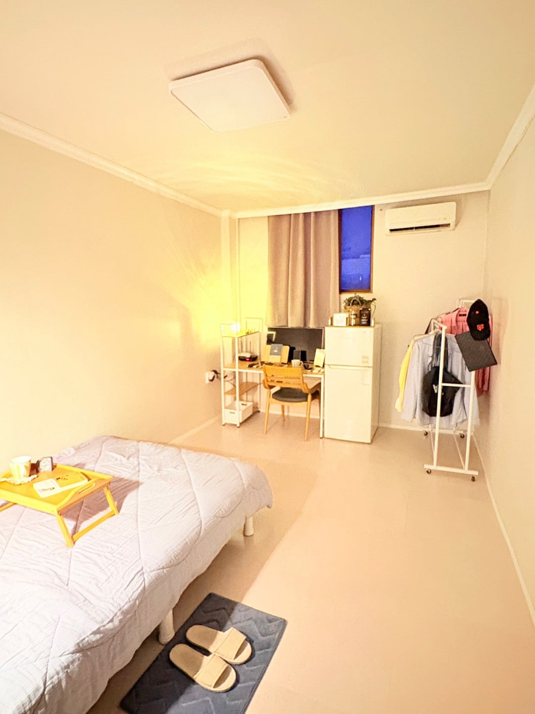 - 房间7坪,床135*200,书桌1300*600,可以保管行李 - 具备可办公、可做饭的简单餐具,智能电视 50 英寸 - Wifi, 大衣柜, 大冰箱, 洗衣机, 晾衣架, 吹风机, 毛巾, 纸巾, 水 收费停车 洗发水、沐浴露、护发素、香皂 - 从仁川机场到宿舍正门乘坐机场巴士时56分钟(包括6分钟步行) - 从宿舍可以走着去的地方 大创(6分钟),OLIVE YOUNG(3分钟),时代广场(3分钟),汗蒸房(6分钟) -从宿舍坐地铁去的地方 (附近有 1 号线永登浦站、2 号线文来站、5 号线永登浦市场站) 东大门 DDP(41 分钟),汝矣岛汉江公园(21 分钟),清溪川(41 分钟),景福宫(39 分钟) 弘益大学入口站(24分钟),北村韩屋村(41分钟),明洞(36分钟),圣水洞(47分钟) 文来洞(12分钟),永登浦站是KTX停车站,去釜山等地方很方便。 清晨感受着从窗户照进来的温暖阳光 晚上坐在房间的窗边享受时代广场的夜景