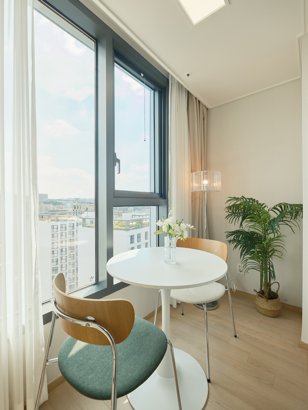 초고층뷰에 낭만적인 야경을 더하다 반짝이는 야경에 로맨틱한 시티뷰 시원하게 탁트인 자연 전망의 파노라마 경관 마운틴뷰 편리한 교통과 전통시장을 함께 경험할 수 있는 최적의 위치 효율적이고 여유로운 공간 구성으로 마음편히 누리는 안락한 휴식 눈부신 햇살이 내리쬐는 채광의 침실 포근한 유럽식 호텔 침구, 푹신한 휴식을 즐길 수 있는 침대 밝은 색감의 조명 배치와 모던한 우디 인테리어 마음에 스며드는 편안한 힐링,에너지 충전, 만족스러운 호캉스를 즐겨보세요!