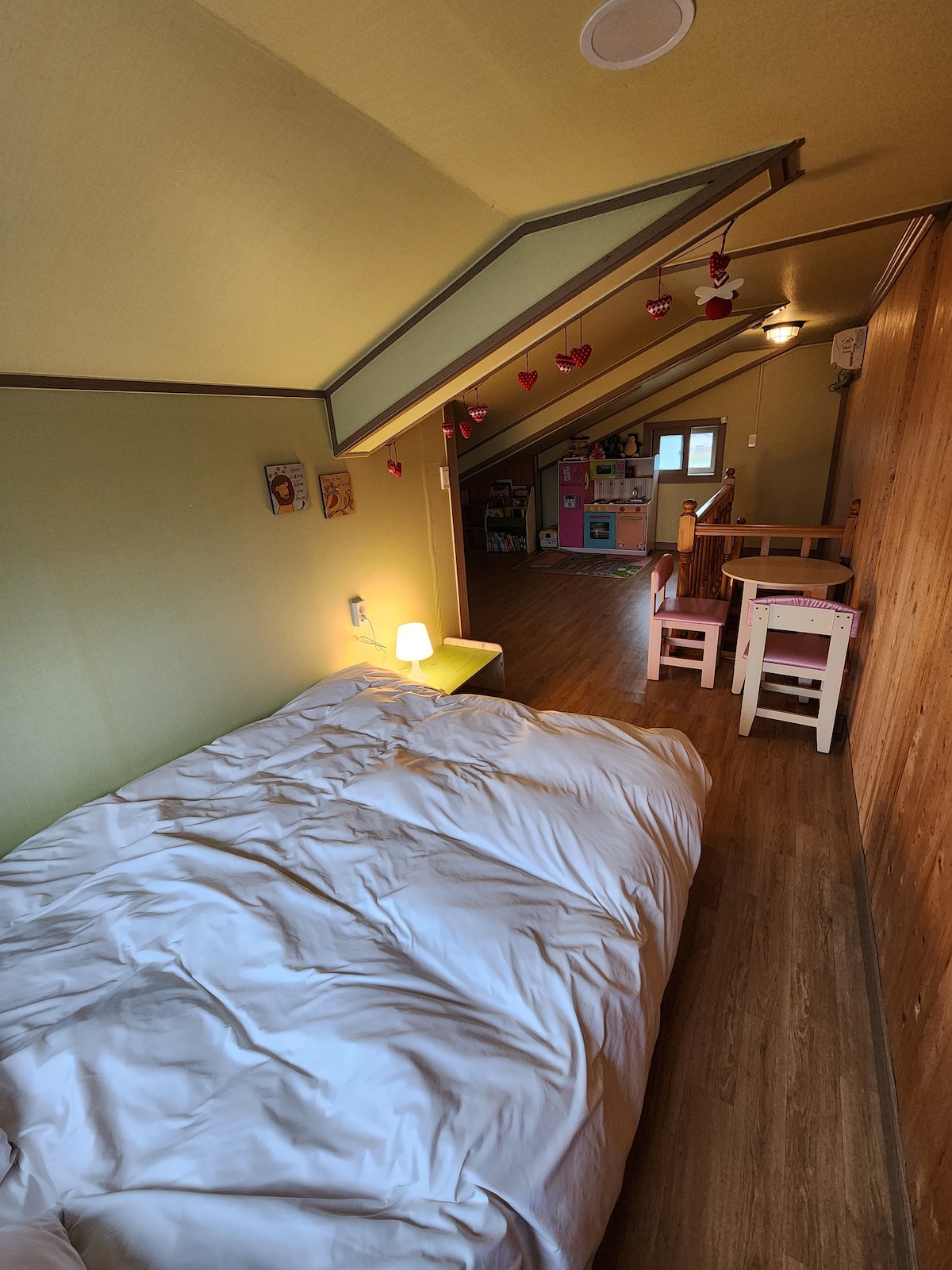 Host lives on the first floor, the guest accommodation on the second floor has a separate front door for guests. It is a place where hammocks are installed on the 495㎡ lawn, you can take a walk with pets, and provide optimal rest for those who want to rest quietly. If you bring barbecue parties and camping tools on the grass and balcony, (15,000₩ per barbecue) you can camp outdoors, pick up persimmons and chestnuts in autumn, and walk along the village trail (path) will also be a good memory.