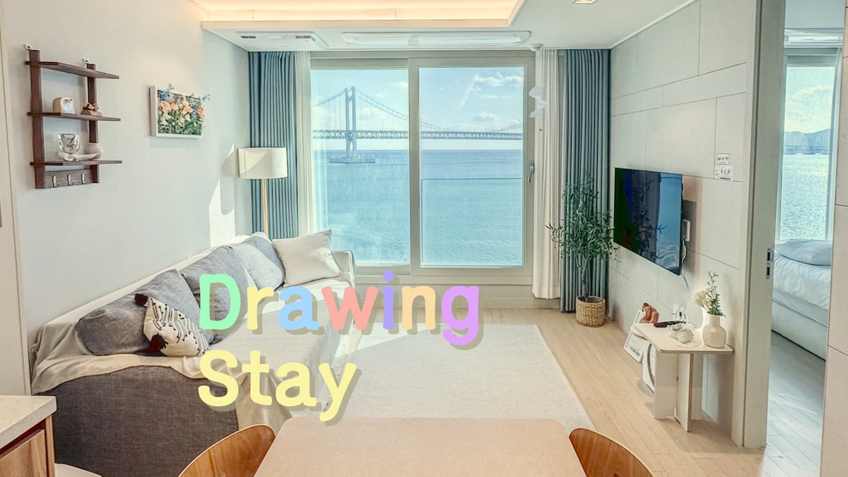 【Drawing Stay】最多可住9人,位于光安大桥正对面,保证清洁,高端合法房源