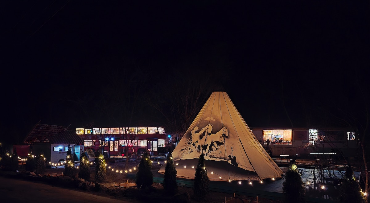 독특한 개성이 넘치는 이 로맨틱한 텐트숙소는 온통 숲으로 둘러쌓인곳에 여유로이 위치해있습니다 전문 캠핑이나 글렘핑장은 아니라서 많은사람들이 오지는 않고 아주 특별한 추억을 원하는 사람들만이 모여 밤새도록 모닥불과 별과 바람과 노래하는곳입니다 밤이새도록 이야기 꽃을 피우고 노래하고 영화를 보면서 시끌벅적해도 누구하나 신경쓸필요없는 한적한 아주 매력적인곳입니다 제가 태어나고 자란 이곳에서 숲을 사랑하고 별을 좋아하는 사람들과 어울려 지내고싶은 마음에 오픈한곳입니다 아주 외딴곳이지만 텐트만 있는게 아니라 제가 이장소에 유럽 빈티지 뮤지엄을 멋지게 꾸며놓아서 볼거리 즐길거리 먹거리가 아주 다양한 곳이라 주인장인 제가 강추해드립니다 오십시요 특별한 경험을 선물해드리겠습니다