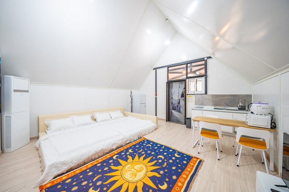 안녕하세요. 저희는 다양한 휴식 공간을 연구하고 제공하는 ONDA입니다. 이 곳에서 머무르실 모든 분들께서 편안하고 행복한 시간을 보내기를 바랍니다. [숙소 소개] 고즈넉한 분위기와 잔잔한 평화, 어라운드빌리지 에서 다독이는 밤을 만나보세요. 널찍한 운동장이 텐트로 메워지고, 화로에 따뜻한 불이 피어오르는 낭만적인 밤. 고요한 추억이 켜켜이 쌓여가는 그림 같은 풍경, 여기는 어라운드빌리지 입니다. [객실 유형] 원룸형 (더블1+주방+화장실1)
