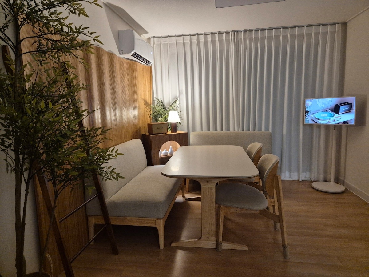오리지널 디자이너 빈티지 명품 가구로 공간을 꾸몄어요 고급스럽고 빈티지한 감성을 느껴보세요 청결과 고객님의 편안함을 최우선으로 생각합니다. 대구시 구청에 정식 허가받은 숙소입니다. 턴테이블과 여러가지 vinyl, 음악 스피커, 의류 스타일러, 빔프로젝트(유튜브) 시청가능, 감각적인 테이블웨어 대구 시내 중심부 위치 최고. 지하철 중앙로역과 도보 10초 핫플, 카페, 유흥, 놀거리등 근방에 많아 대구 여행 숙소로 최적입니다. 만일의 사고를 대비, 이용고객들의 안전과 법의 보호를 받기 위해서는 반드시 합법숙소를 이용하세요. 비상, 화재, 전기 안전 검사와 공중보건위생법을 허가받아 이용고객들의 안전과 법의 보호를 받는 숙소입니다.