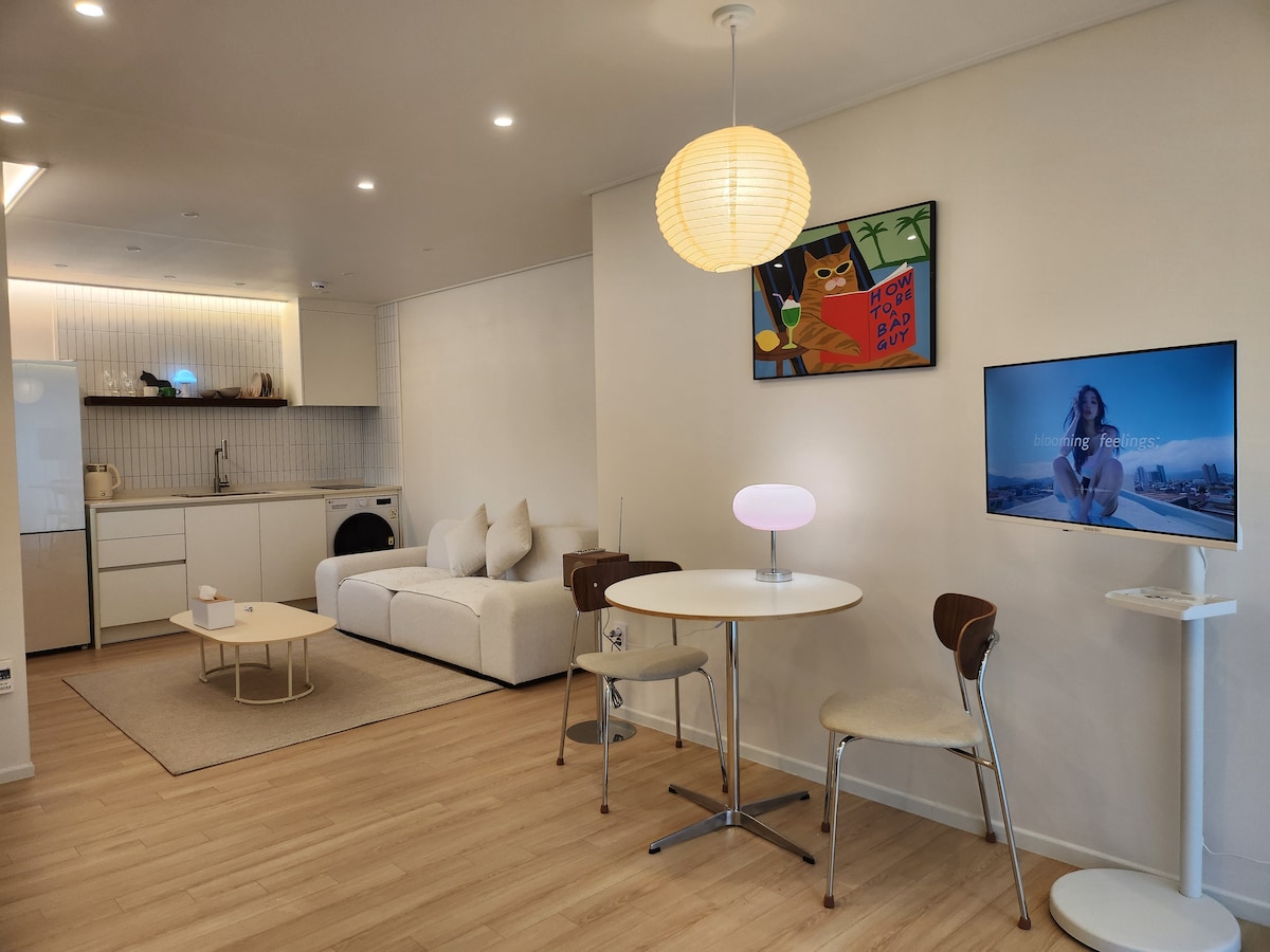 동성로 초역세권에 지하철도보 1분,중앙로네거리 위치하여 교통이 편리합니다. 대구의 도심지 관광코스인 대구근대골목, 약전골목, 김광석거리,대구스파크랜드 와 근접하며, 주변에 영화관,쇼핑몰,레져,맛집 등을 즐길 각종 인프라 시설들이 즐비해 있습니다. 깨끗한 신축건물로 빔프로젝터 , lp 플레이어,(모던한 lp와 레트로 감성적 lp와 함께 비치) 스타일러,시스템에어컨,세탁기,인덕션,냉장고,쇼파,스마트tv(넷플릭스,유튜브),무료와이파이 다리미 다리미판등이 갖추어져 있어 편안하게 쉴수 있으며 는 공간입니다.따뜻한 스타벅스 아메리카노 캡슐커피&커피머신도 준비되어 있습니다. 차량은 유료주차장을 이용하셔야 합니다. 주변주차장 안내를 드립니다-