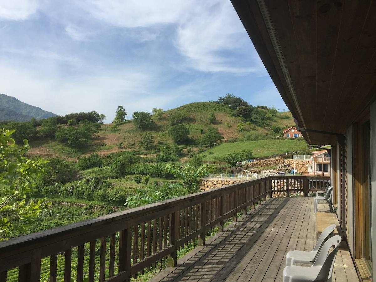 화개장터에서 가까우며, 전망이 좋은 산중턱의 숙소입니다. 지리산 둘레길에 있으며, 걷기 좋아하시는 분은, 숙소에서 1시간 정도에 쌍계사까지 걸으실 수 있습니다. 근처에 찻집도 많으니, 휴식을 취하시는 분이나 조용히 연인이나 친구들이 있기에 좋습니다. 특히 비오는 날의 전망은 무척 아름다우며, 청소도 깨끗하게 하려고 노력합니다. 특히 프라이시버시에 신경 쓰시는 분들을 위해 조용하고 피해가 안 가게 숙소를 운영하려고 합니다.