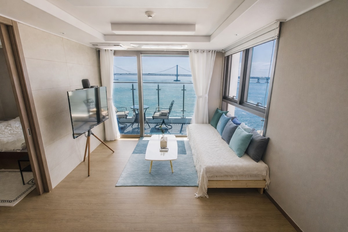光安大桥和海景/露台烧烤/复式顶层公寓/可接待团体
