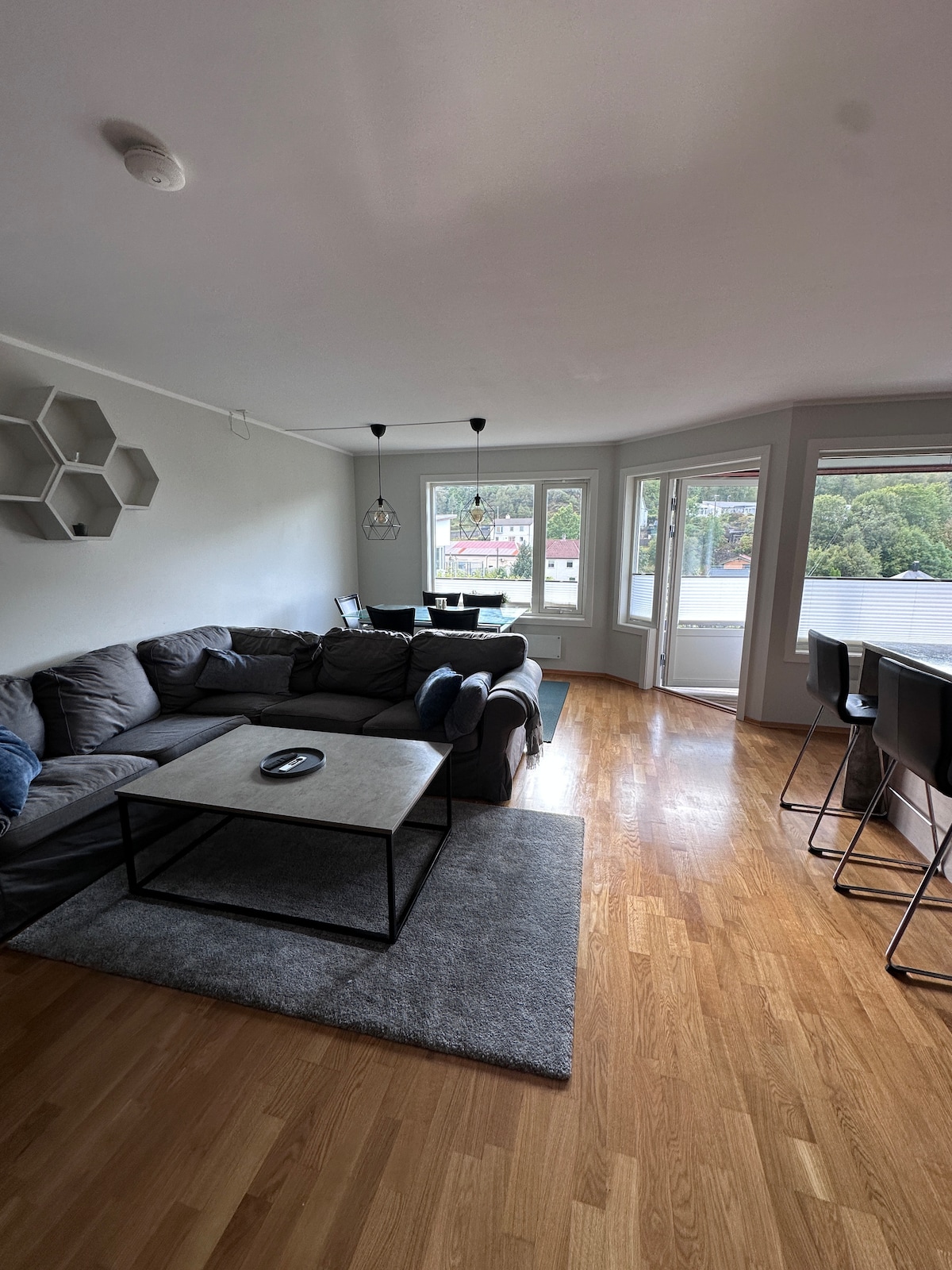Lekker toppleilighet med høy standard i 6. etasje. Fin utsikt, privat terrasse og stor terrasse med 360 graders utsikt. Heisadkomst. Meget sentral beliggenhet med gangavstand til Bryggen, restauranter, pub, museum, park, badestrand. Umiddelbar nærhet til togstasjon. Bergen light rail med direkte adkomst fra flyplassen. Dagligvarebutikk i nabobygg. 50 meter til nærmeste parkeringsplass og 300 meter til p-hus. God planløsning med 2 soverom og 2 baderom! Vaskemaskin og tørketrommel til fritt bruk.