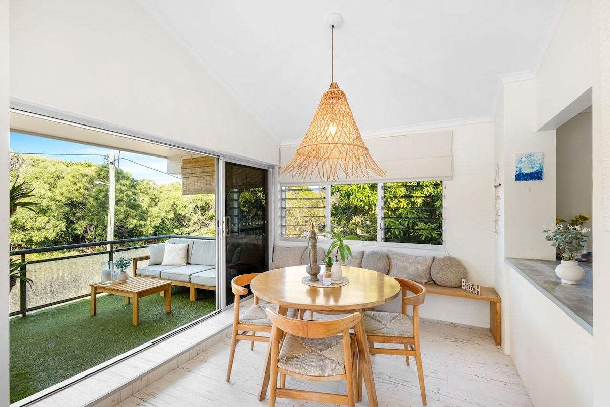 When we say beachfront, we mean right-on-the-dunes, waves-lulling-you-to-sleep, next-stop-sand, absolute beachfront. Check the surf from your own deck, then step out the gate and have your feet in the sand seconds later with a direct path onto the beach. When it's time to relax, there's a pool and plenty of comfy places to kick back with a drink. And of course, a fully equipped kitchen and living areas, fun beach vibes and plenty of room for everyone, all just 5 min to Coolum.