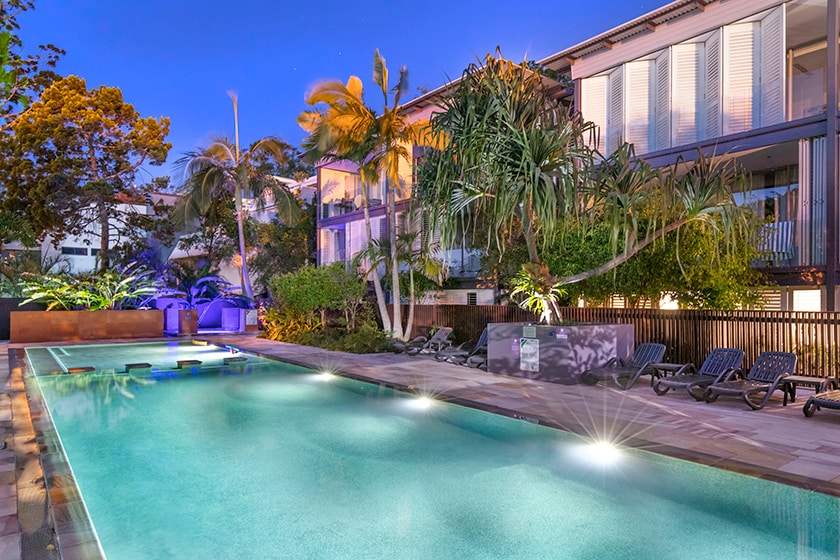 Our range of two bedroom terraces are located at The Point Coolum Beach. All are perched on a hillside looking north across First Bay and along the coastline towards Noosa. Enjoy our secluded location immediately opposite Third Bay, surrounded by bush trails and a just short scenic walk along The Bays into Coolum. Get away from your every day busyness and get onto the laid back lifestyle of Coolum time.