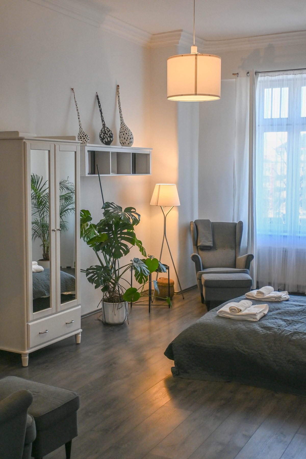 Élvezd a stílusos élményt ezen a központi szálláshelyen, amely gyalog csak 5 perc Győr barokk belvárosának szívétől, és a Duna parttól is. Csendes, nyugodt, ám exkluzív és minőségi környezet. Frissen felújított lakás, amely ideális pár napos vagy akár középtávú tartozkodáshoz, pihenéshez, online munkához is. Elláttam minden funkcionális és kényelmi felszereléssel, amire egy utazónak szüksége van. Magam is világpolgár életet élek, így tudom mi teszi otthonná az átmeneti tartozkodás helyszínét. :)