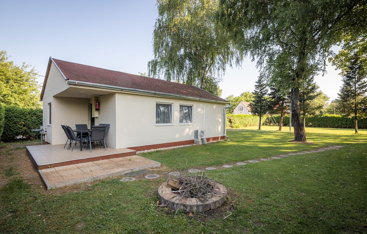 A place of relaxation and wellness for holidays or just simple weekend getaways. Walk. Cycle. Try Canoe. Swim. Or simply enjoy the quiet time reading at the riverside of the Danube braided channel. Let kids play and have a great time grilling or in the sauna, and cool down in the river afterward. Enjoy the night sky in the outdoor wood-heated hot tub. Cook in a well-equipped kitchen, or rather, discover wonderful Hungarian cuisine. Close to Bratislava 30' & Vienna 80'. Enjoy our holiday home.