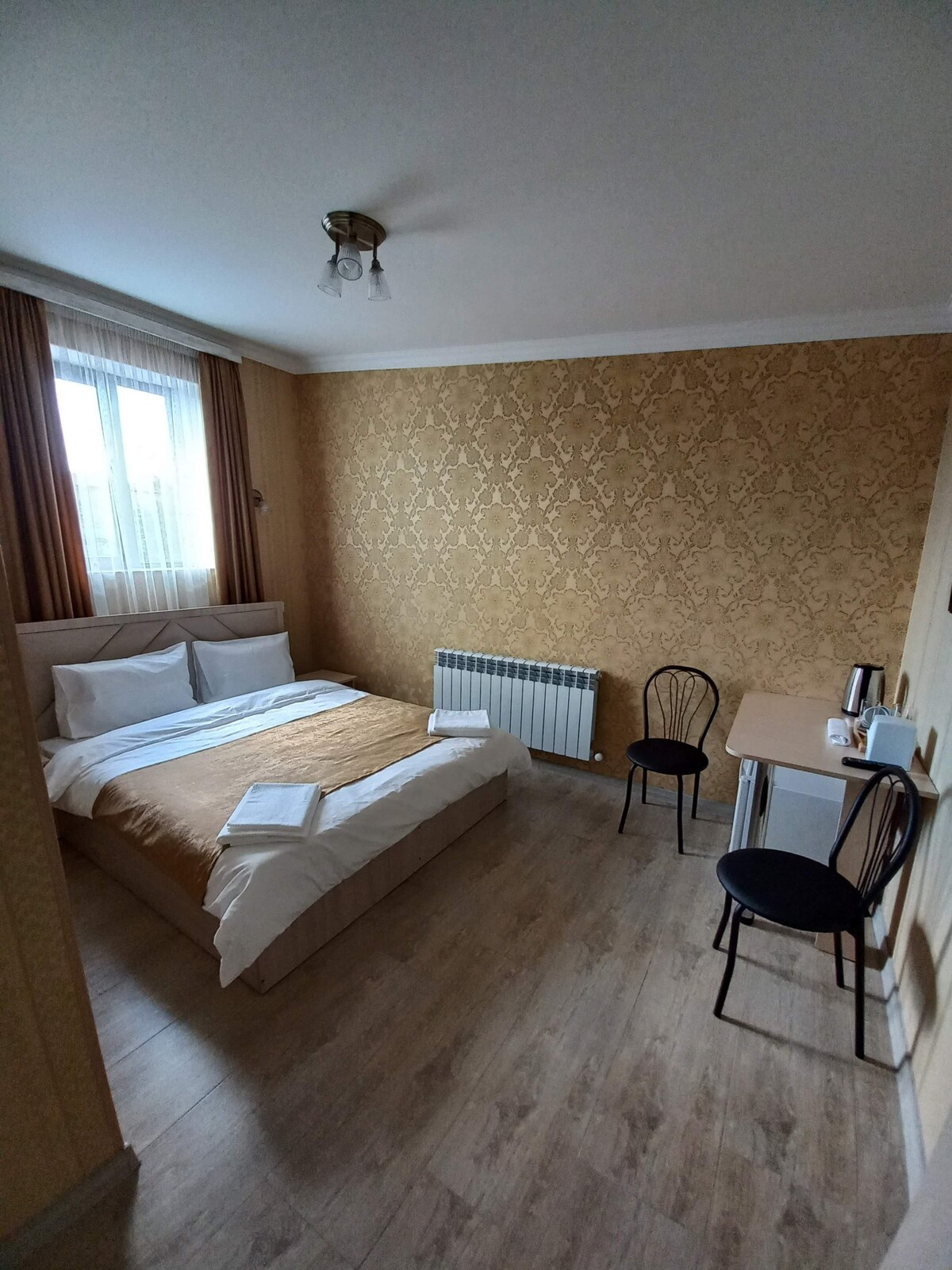 Cozy and modern room in the center of Gyumri. Quiet and convenient location close to cafes, restaurants, and main attractions. The room features a comfortable bed, fresh linens, Wi-Fi, heating/air conditioning, and power outlets near the bed. Guests have access to a shared kitchen, showers, a lounge area, and a balcony. Perfect for a comfortable short stay.