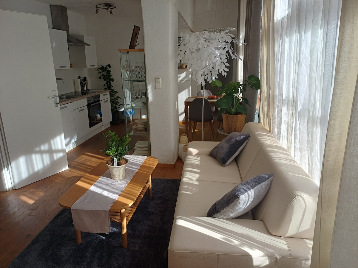 Fühl dich wie zuhause! Die ideale Unterkunft für dich - egal ob für die Arbeit, Eventbesuche oder ein Städtetrip mit deinen Liebsten. Die liebevoll eingerichtete Altbauwohnung umhüllt dich mit ihrem Charme - und das ab dem ersten Augenblick. Mit Liebe zum Detail wurde auf alles Rücksicht genommen, was du bei deinem Aufenthalt brauchst. Neben der voll ausgestatteten Küche, großem Wohnzimmer und einem modernen Arbeitsplatz (High Speed Wifi) bietet die Wohnung dir ein tolles Bad mit Waschtrockner.