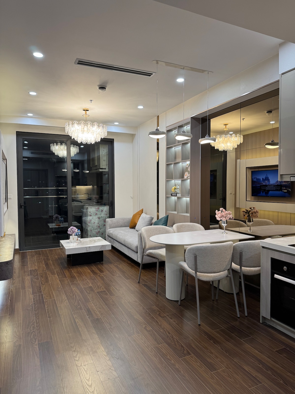 Căn hộ được thiết kế sang trọng, hiện đại với không gian mở ,tầm nhìn thơ mộng cả về hồ và thành phố lung linh.. Phòng bếp đầy đủ tiện nghi với các dụng cụ nấu ăn cơ bản, lò nướng tiện lợi, sẵn sàng cho những bữa ăn ngon miệng. Bạn có thể thư giãn với TV màn hình lớn có sẵn Netflix, hoặc thưởng thức ly rượu vang trong không gian ấm cúng của riêng mình. Đặc biệt, bạn còn được sử dụng miễn phí bể bơi và phòng gym hiện đại trong khuôn viên, giúp bạn luôn năng động và thư giãn trong suốt kỳ nghỉ.