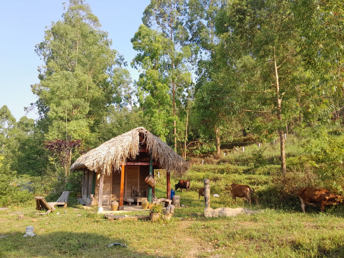 The cabin was made from wood, bamboo, stone with the palm leaves roof. The cabin is located in the Tay Village ( Ethic minority). When you stay at my home you can hike to forest, river, water fall; swim in the river near by.