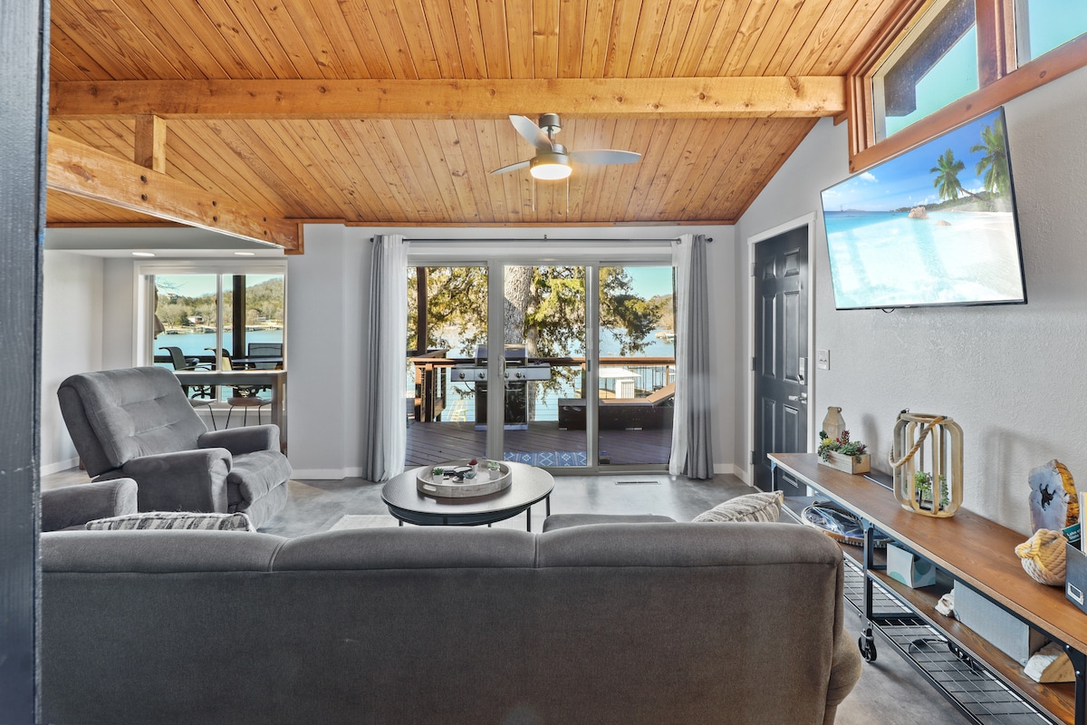 Looking for privacy, peace and quiet, and a great view? You've found the right home! Is this the best view on the lake? We're biased but it's definitely one of the best for the price! This is not a lake front property but it's elevated above all of the houses in front of it so you will still feel like you are on the lake. In the morning when the sun rises and bounces off the lake it might give you goose bumps. After 3 years of owning this house I still get them.