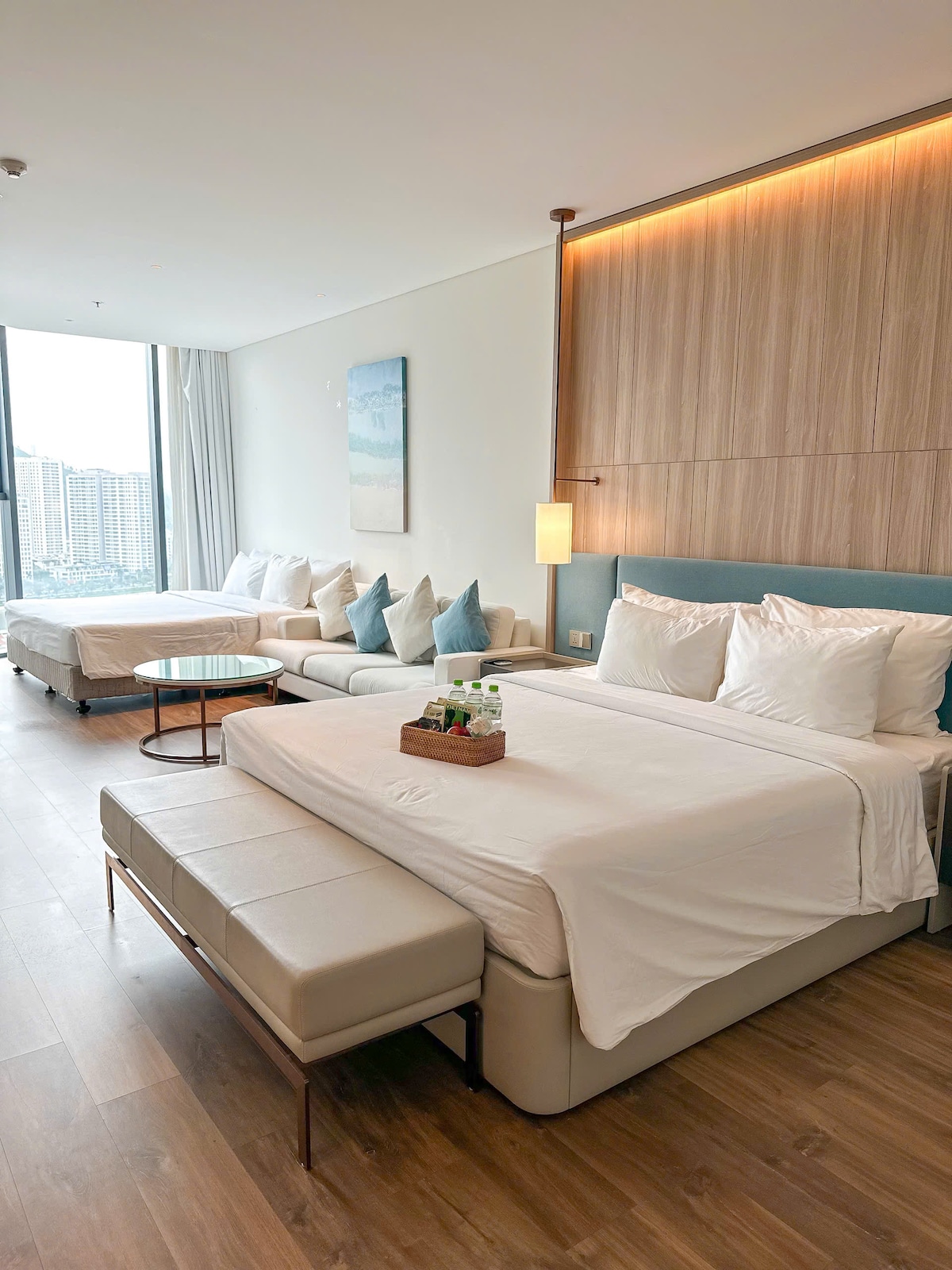 Luxury apartment à la carte Ha Long - the highest 41 floor building in Ha Long, the apartment on the 32nd floor has 2 bedrooms and a living room with glass ocean views, at the foot of the building is a white sand beach, 5-stars standard room facilities are fragrant and clean, suitable for families with young children or groups of friends who want to have a common space when traveling but still need a private, closed bedroom, especially when traveling. Watch the sea 24/24 even lying on your bed