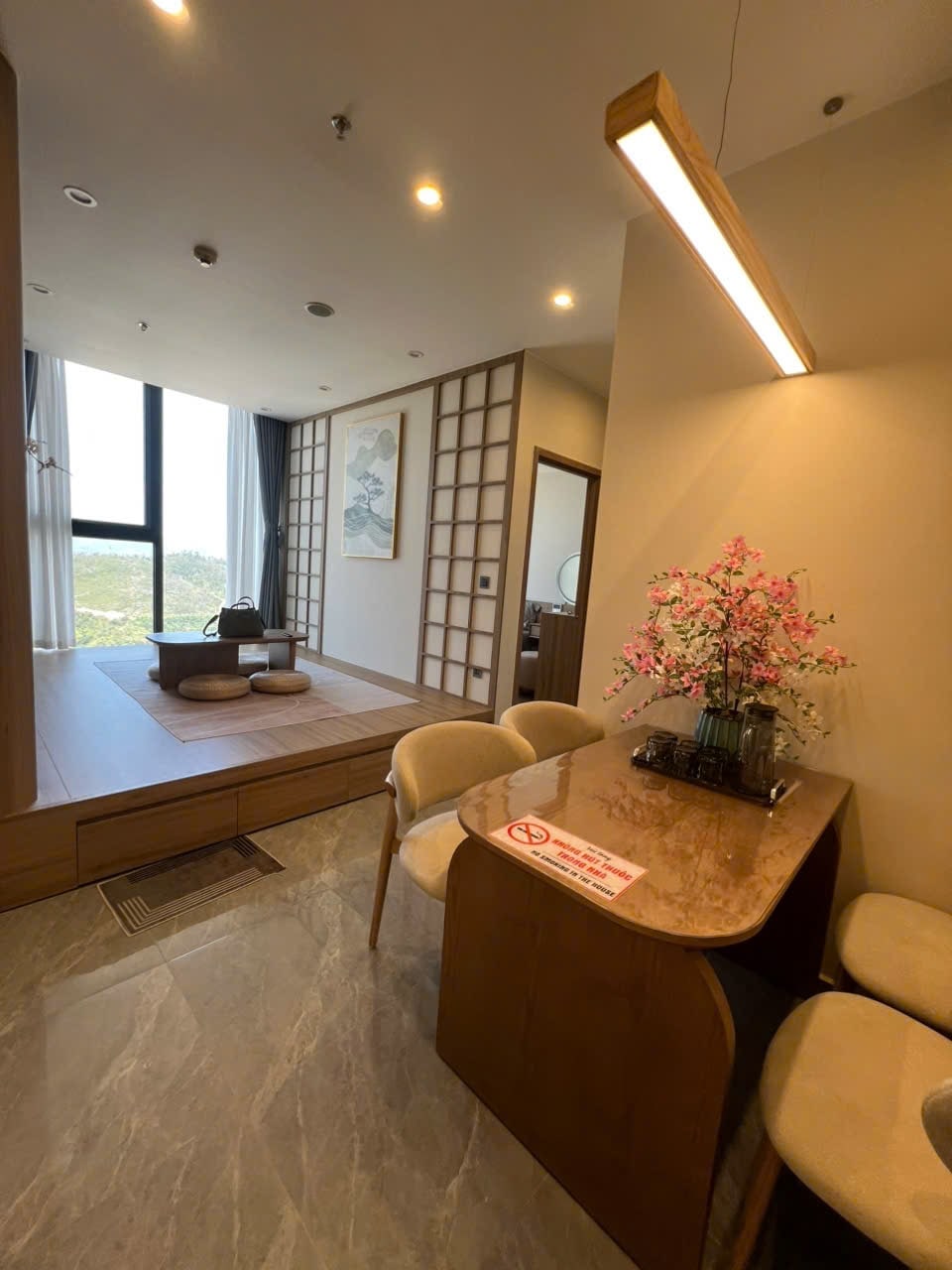 ✨ Lavan Sky Wabi-sabi – "Castle in the Sky" in the middle of the wonders of Ha Long Bay ✨ Enjoy a unique resort space at Lavan Sky Wabi-sabi, which offers a luxurious living experience amidst majestic nature. 🏡 Duplex apartment 3PN 165m2: 3BR suitable for 6 adults and 3 children. Panoramic glass doors open up a full view of the bay & sky. The super-wide balcony of 65m² stretches around the apartment, ideal for enjoying the sunset or an outdoor BBQ party.
