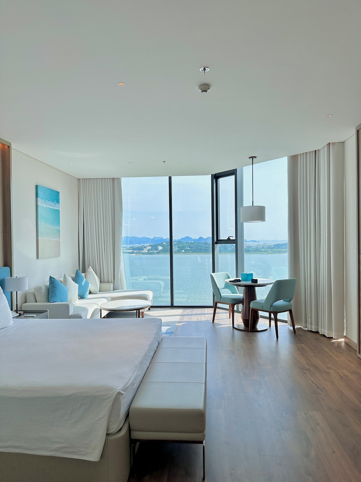 Located next to InterContinental Halong Bay Resort, this 45 SQM fully furnished Studio with breathtaking seaview of Ha Long Bay from the high floor. It's very convenient with full services for relaxing & entertainment & food at exclusive rate for guests staying here and perfectly on the beautiful beach. 🏊♂️Please note that room rate does not include pool, jacuzzi, gym, spa & breakfast which are managed by the 5* à la hotel. You can buy tickets at the reception at the resident rate.
