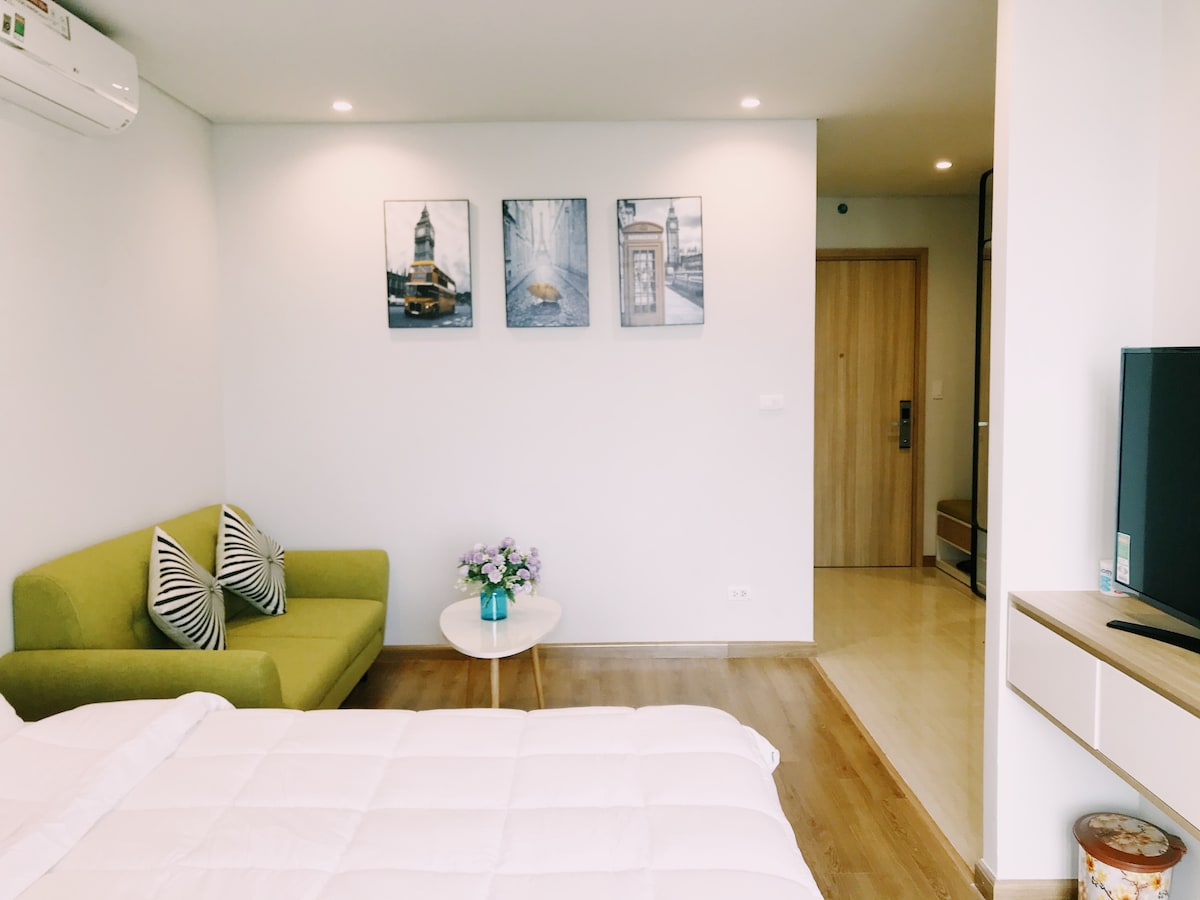Special -20% off promo for long term staying: Enjoy a relaxing stay in our modern and fully equipped studio apartment located in the prestigious Alacarte Ha Long , just a few minutes’ walk from the beach. Perfect for couples, small families, or business travelers. • Area: 45m² • Layout: Spacious, well-lit studio with contemporary decor • Bed: 1 King-size bed 1m8 • Large glass windows offer partial views of Ha Long Bay • Clean, cozy, and professionally maintained