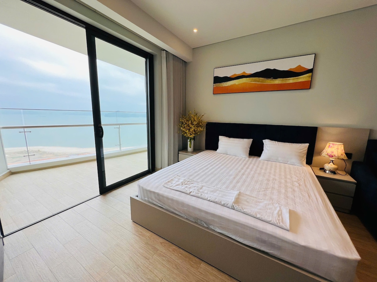 Luxury apartment à la carte Ha Long - the highest 41 floor building in Ha Long, the apartment on the 32nd floor has 2 bedrooms and a living room with glass ocean views, at the foot of the building is a white sand beach, 5-stars standard room facilities are fragrant and clean, suitable for families with young children or groups of friends who want to have a common space when traveling but still need a private, closed bedroom, especially when traveling. Watch the sea 24/24 even lying on your bed