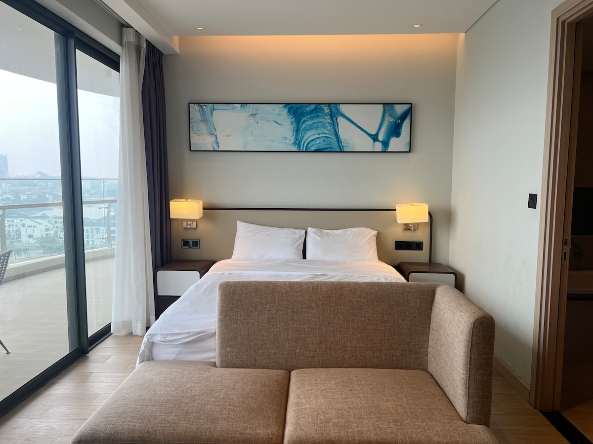 Luxury apartment à la carte Ha Long - the highest 41 floor building in Ha Long, the apartment on the 32nd floor has 2 bedrooms and a living room with glass ocean views, at the foot of the building is a white sand beach, 5-stars standard room facilities are fragrant and clean, suitable for families with young children or groups of friends who want to have a common space when traveling but still need a private, closed bedroom, especially when traveling. Watch the sea 24/24 even lying on your bed