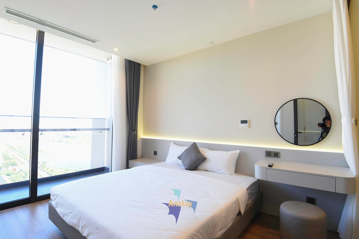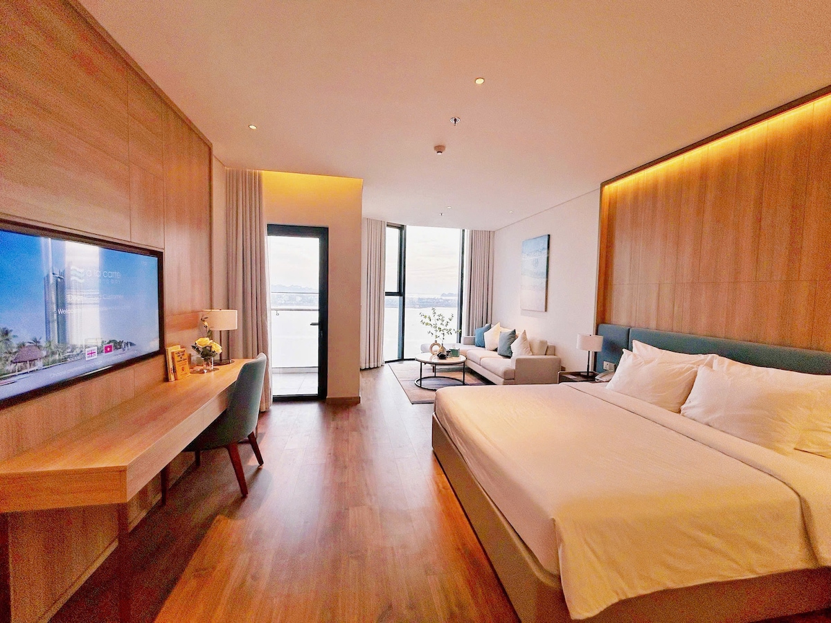 This is a beautiful apartment located in the A La Carte Ha Long building, the tallest building situated right by the beach. An ideal place to relax with a sea view. A productive workspace with a desk, WiFi, and full amenities in the apartment. You can conveniently reach the following locations: • 1-minute walk to the beach. • 5-minute drive to night market. • 10-minute drive to SunWorld Entertainment Center. • 10-minute drive to the city center, Quang Ninh Museum, and more.