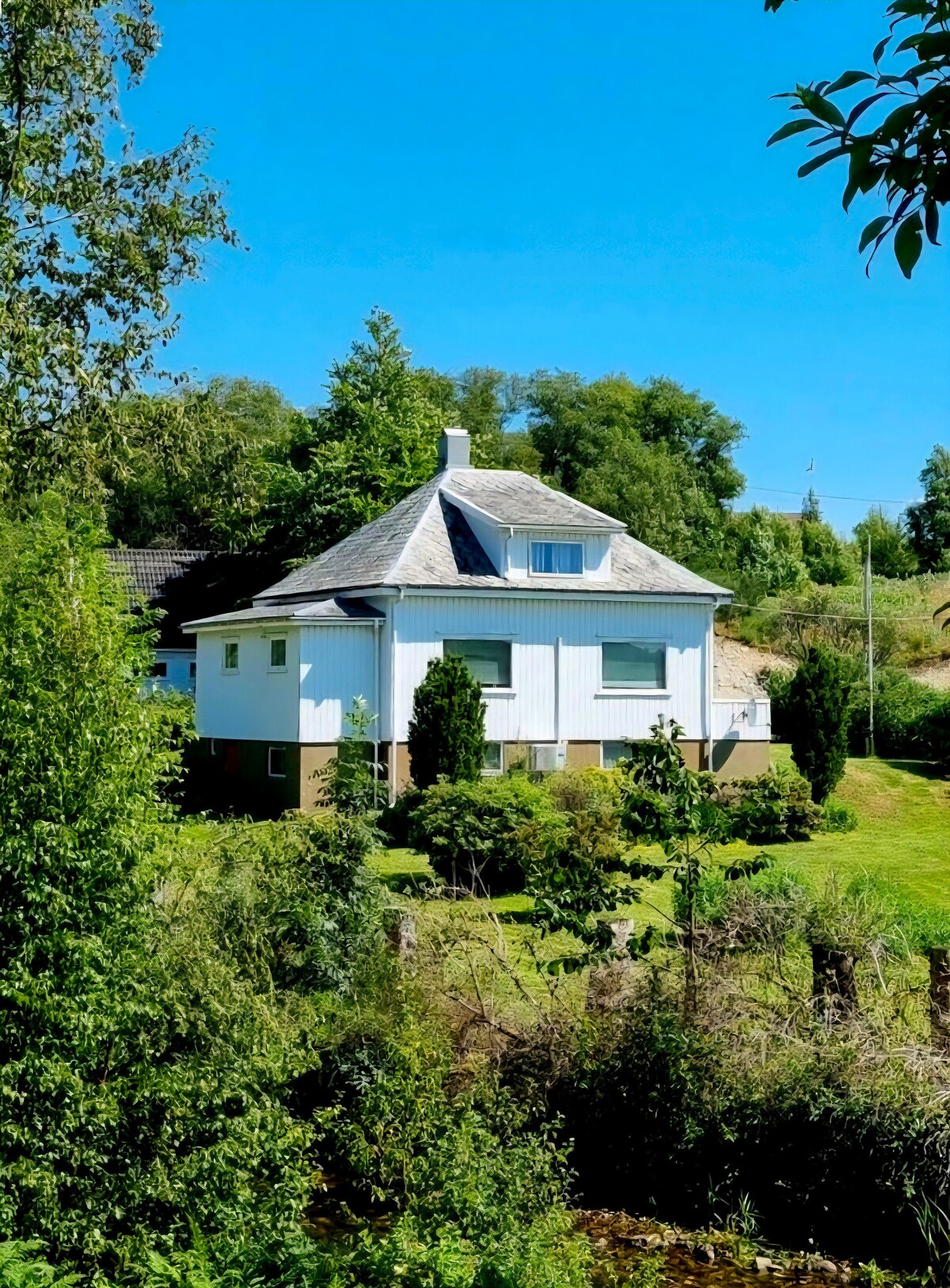 Recently renovated home with a large usable outdoor area, located in a peaceful neighborhood at the end of a quiet street, bordering a forest. Walking distance to a local grocery store (150 m) and train station (250 m). Easily accessible by foot or bike to beautiful beaches and scenic mountain trails with marked paths. The home is inviting, spacious, and modern, with an attached garage connected directly to the house.