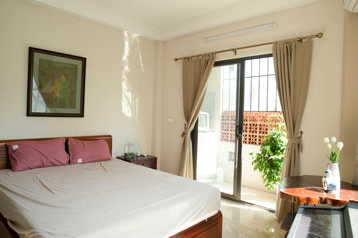 Sunca’s homestay, 30km away from Noibai Airport, is located in Ho Tay, Hanoi. This is a cozy and peaceful garden house designed in the European architectural style of domes, but Oriental interior decoration which offers a lot of common space for you. This spacious house (of more than 200m2 including garden) is very close to nature thanks to a lot of windows overlooking a large garden and a balcony full of flowers. The bedroom decoration is very convenient and warm.