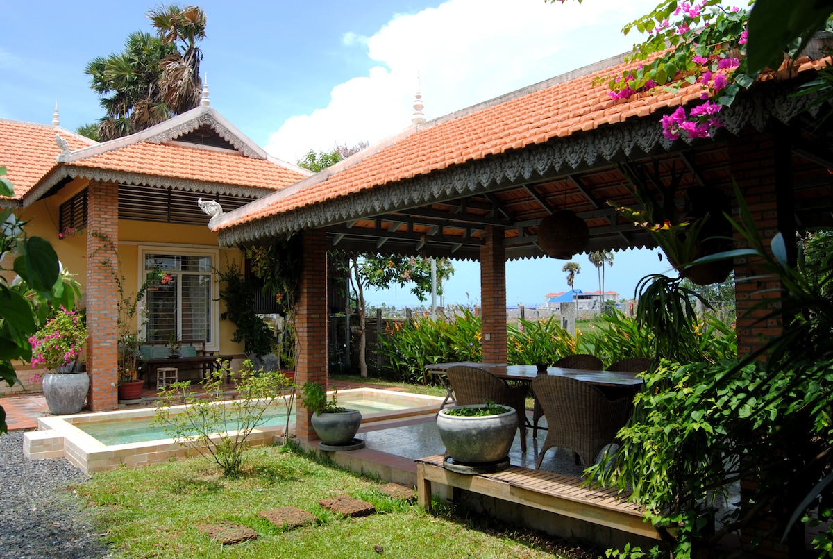 Detached house with private pool and exotic garden. Air-conditioned, ideally located in a tropical setting, perfect for travelers looking for relaxation and adventure. The house is bright, with contemporary decoration. The main idea of the place is undoubtedly the "chill attitude" perfect atmosphere on a hot day or a night swim. Our team (Myriam and Sokhun) will be at your disposal to answer your questions and help you during your stay