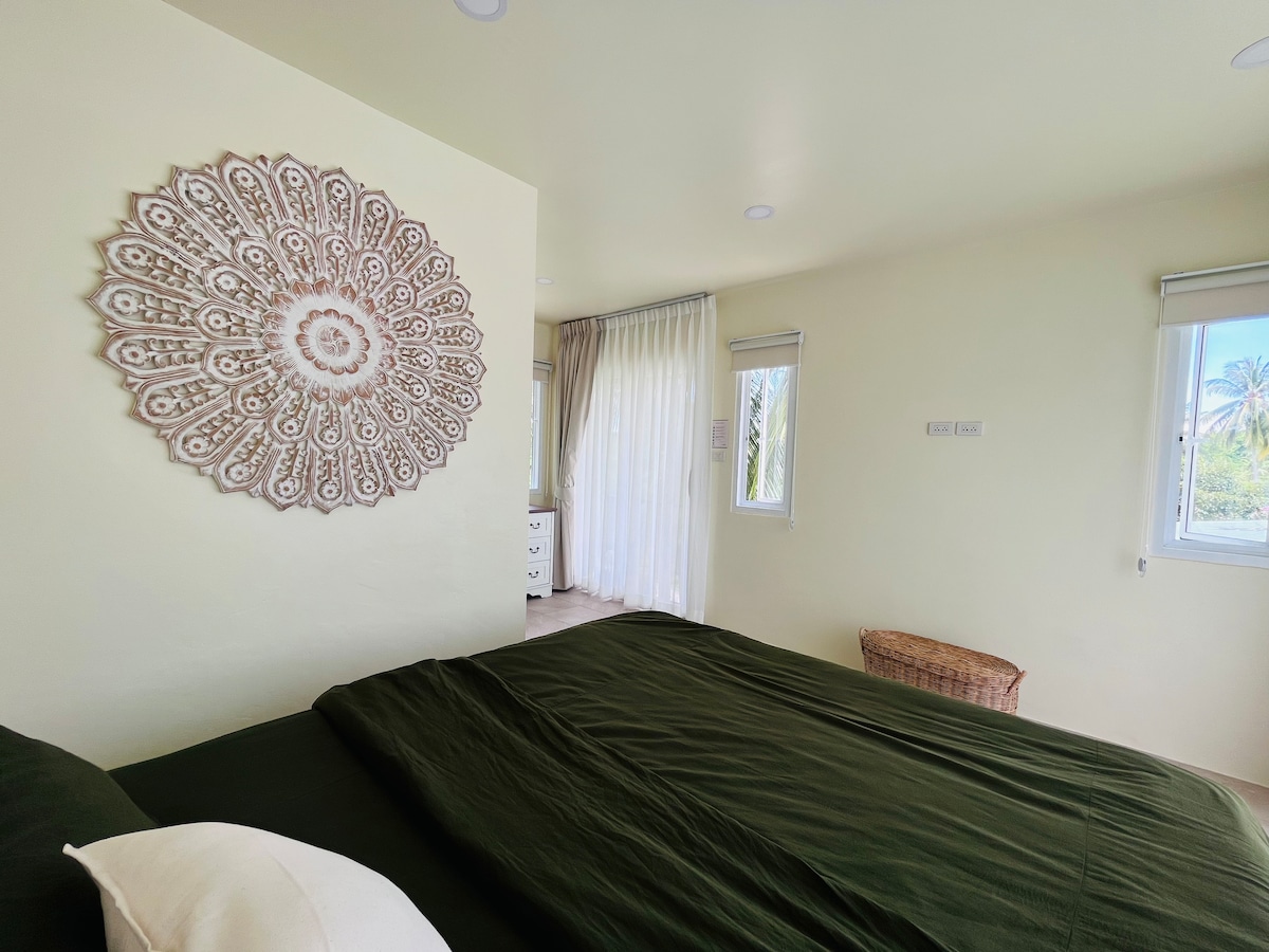 Enjoy magical sunsets from your private balcony in this bright and stylish 2-bedroom apartment just 30m from the beach. Located on the top floor of a modern house with a private entrance and full privacy. Surrounded by tropical calm, you’re perfectly placed between Thong Sala and Haad Rin — close to cafés, yoga, the night market, and the energy of the Full Moon. Wake up to birdsong, fall asleep to the sound of waves.