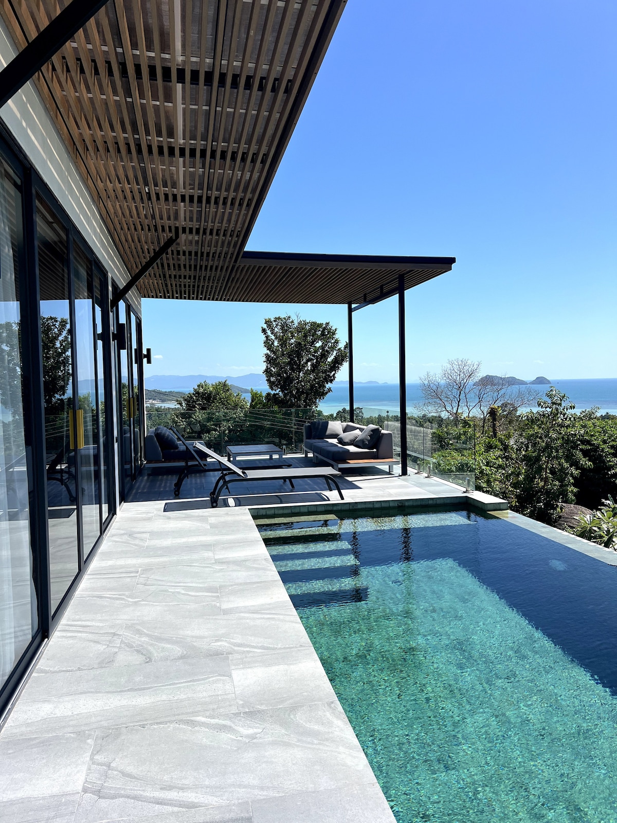 This stylish place to stay is perfect for singles or couples trips. Tall ceilings and glass windows with blackout curtains with beautiful mountain and garden view. Amazing seaview with formidable sunset from the private terrace… it has its own pool just for you. Walking distance to the beach 🏝️ 5 minute drive to 7/11 in Chaloklum and 12 minutes to Sirithanu 🛵 It’s a 2nd floor. Electricity is extra 7 baht per unit. To know the exact location please look on gmaps for Kanchaya Residence