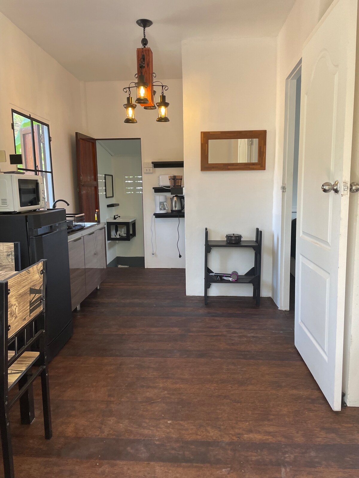 This small bungalow with two single beds and a sofa bed. Its comfortable and in a very quiet area of SriThanu. 100% safe area. Only 2 min walk to Orion Yoga Center and 100m away from One Yoga. The Bungalow is equipped with a small outside kitchen, with has a gas hob, sink and a seating area. Inside it has a small fridge and microwave and smart tv. Air-conditioning, Ceiling fan and hot water shower.Includes general cleaning. Cleaning and bed linen and towels are changed every 7 days.