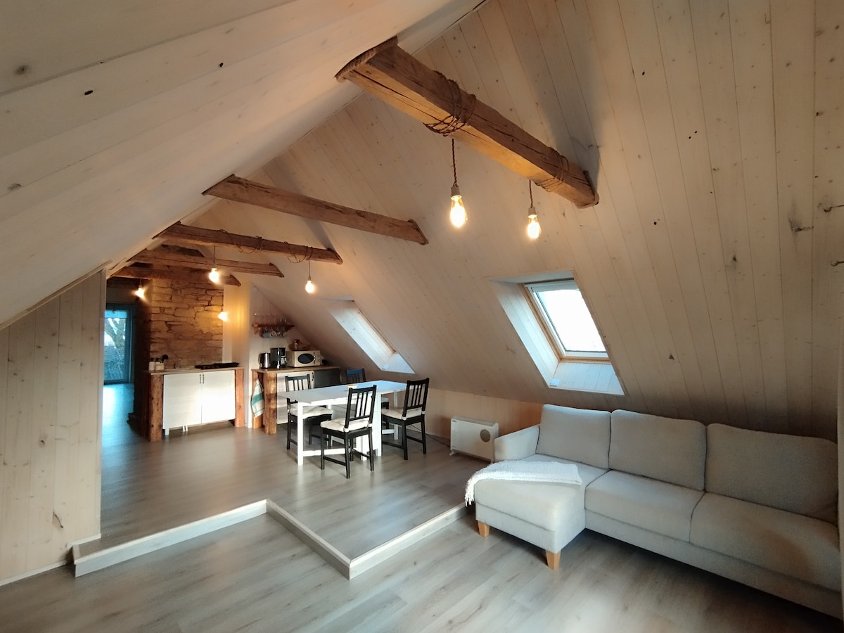 Cozy loft in Haapsalu's old town, 100m from the sea promenade and iconic Kuursaal. Exposed brick, hardwood floors, fireplace and glass-wall shower. Sleeps up to 4 — king bed, sofa bed and crib. Fully equipped kitchen, AC, free parking and a private backyard. Castle, cafes and shops all within walking distance. Perfect for couples or families.