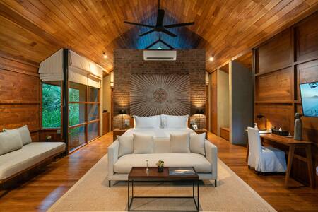 Our spacious Family Room at Dudley Nature Resort offers comfort and convenience for families or groups. Accommodating 4 adults + 1 child, this modern room is equipped with air conditioning, a private bathroom, and includes complimentary breakfast . I deal for a relaxing stay, the room provides access to the resort’s large swimming pool, beautiful garden, and jungle surroundings. Perfect for families seeking a peaceful, nature-filled retreat.