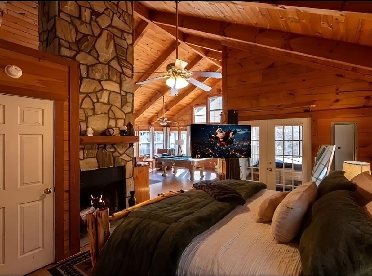 Just 12 minutes from Helen, embark on an indulgent journey into the forest at Moonfire Cabin. Renovated in 2024, this secluded sanctuary boasts something no other cabin has— a massive FLORIDA KING bed, the largest on AIRBNB, plus another bedroom with a king (3rd has a queen). You will rest like royalty! Enjoy our screened-in Hot Tub, 5,000 Game Ultra Arcade, luxe fire pit with twinkle lights and a swing! Couples and families alike will be transported to a new realm of comfort.