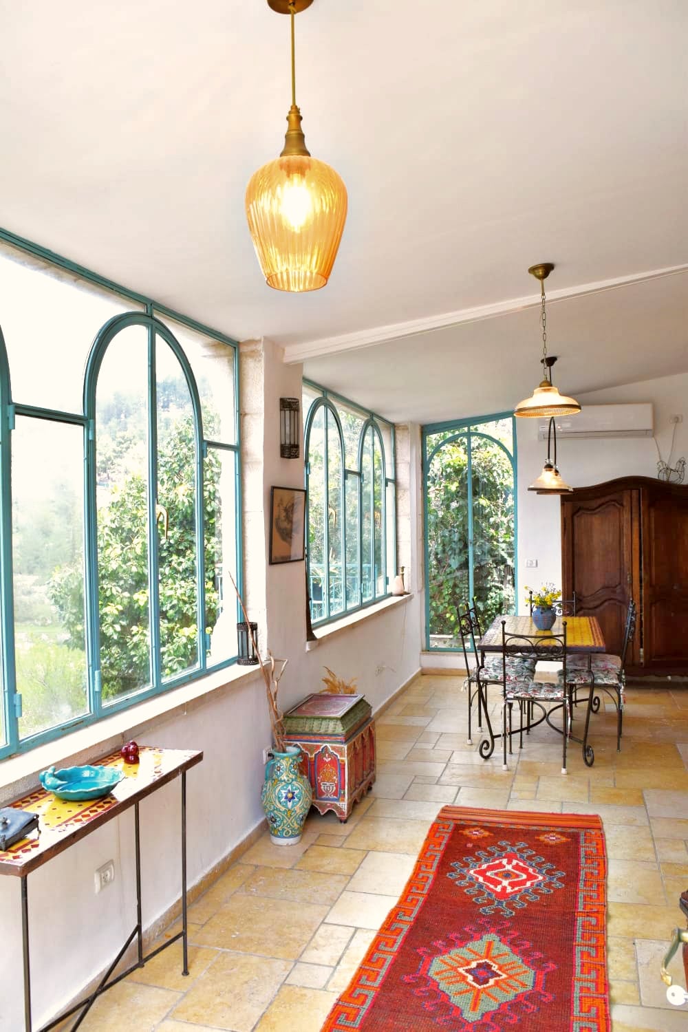 Experience Jerusalem from a serene, refreshing home base. Charming 30 sq m apartment in the heart of Ein Kerem, the most delightful neighborhood of Jerusalem with nice cafes, surrounded by lush nature and ancient terraces. Softly renovated, the bedroom provides an elegant arched ceiling dating back to the 1890s. Jerusalem Stone walls lend a unique ambiance. Private roof top with stunning views of the St John´s Church. Ideal for a couple and an infant, with a warm and welcoming host family