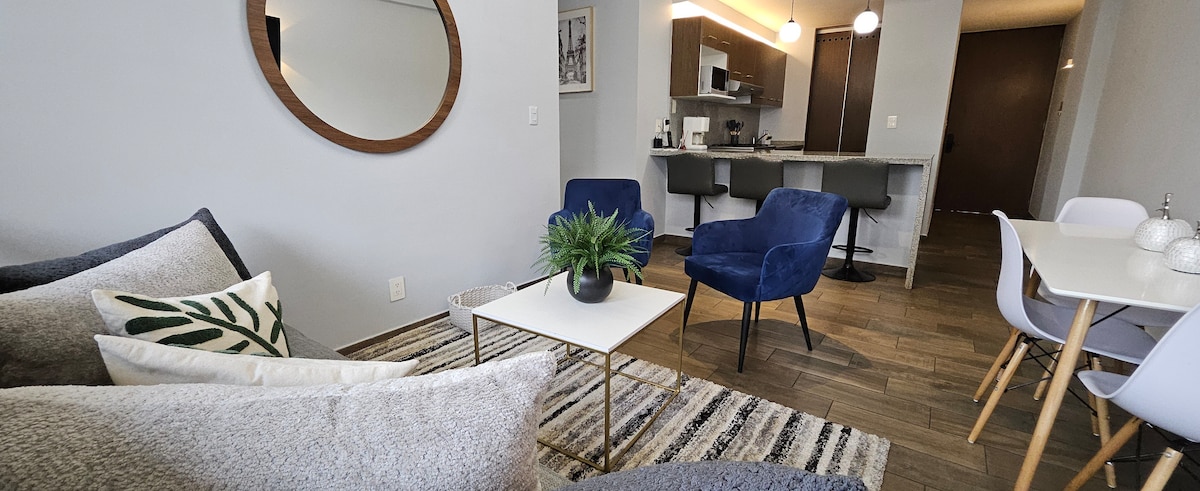 This beautiful and cozy apartment; we are experienced hosts, our goal is to make your stay unique and unbeatable. *Located a block and a half from downtown Tepoz: a unique destination thanks to its holistic and energetic atmosphere. *Ideal to discover and immerse yourself in the local environment with your partner, family or friends. *Spacious rooms, equipped kitchen, dining room and terrace. *Internet to work from home. *Parking. *Pet Friendly.