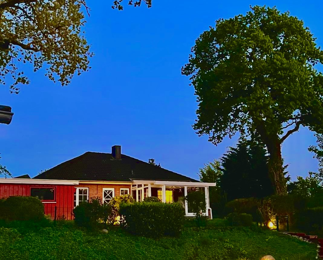 Unsere kleine „Kapelle“ befindet sich auf einem ehemaligen Bauernhof zwischen der Schlei und dem Naturpark Hüttener Berge. Friedlich eingebettet zwischen Wiesen, Äckern und Mooren liegt unser unverwechselbares „Mini-Dorf“. Bei uns leben vier Familien mit insgesamt fünf Kindern sowie eine freundliche Hovawart-Hündin, vier Katzen, ein Hahn und zwei Hennen. Alle Zwei- und Vierbeiner laufen auf dem Grundstück frei herum, es gibt bei uns weder Zäune noch Pforten.