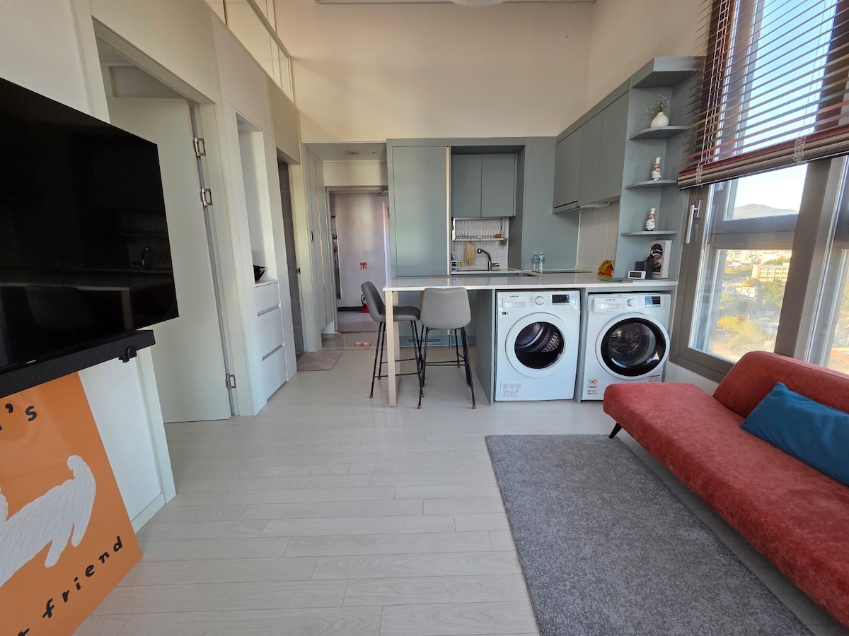 9*连住优惠*新建筑公寓$여수밤바다@Netflix Disney#酒店新床上用品#电动车充电#免费停车