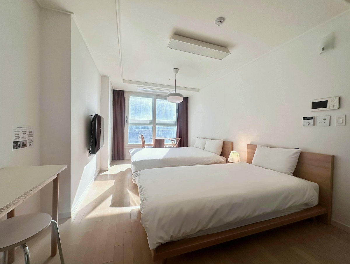 🕰️체크인 15:00 체크아웃 12:00 해운대 지하철역과 해운대 해수욕장 딱 중간에 있어 위치가 매우 좋습니다 해운대 구남로 상권을 모두 누릴 수 있고 해리단길도 가까워 맛집 카페 술집 어디든 가기 편합니다 신축 건물이라 숙소가 매우 깨끗하고 편안하며 쾌적합니다 It's perfectly located, right between Haeundae Subway Station and Haeundae Beach. You can enjoy the full commercial district of Haeundae Gunam-ro, and Haeridan-gil is nearby, making it easy to get to restaurants, cafes, and bars. Because it's a newly built property, the accommodations are very clean, comfortable, and pleasant.