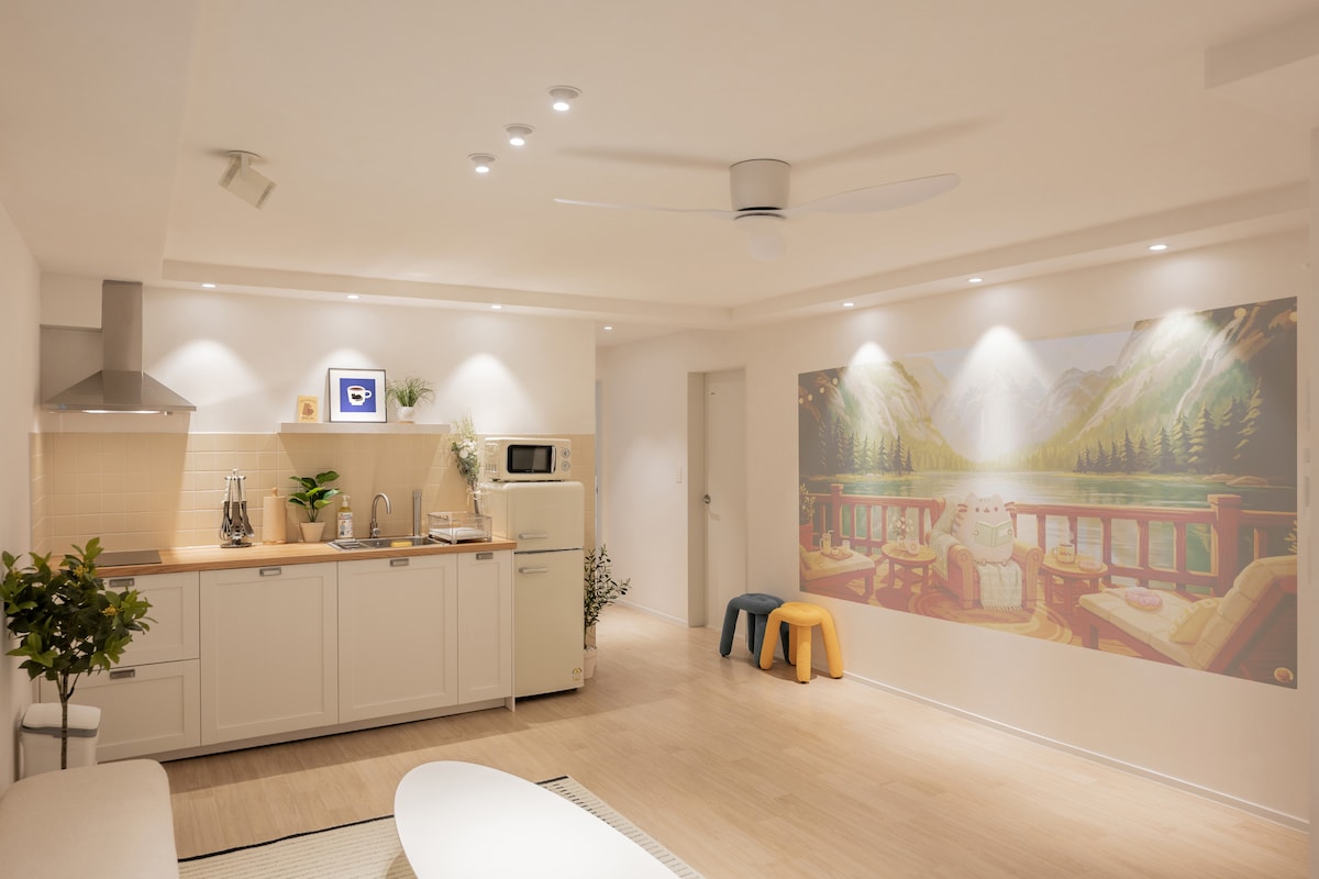 부산의 중심부 서면과 요즘에 핫한 전포 바로 옆에 자리하여 입지적 편리하게 이용하실수 있는 공간입니다.(전포역 1번출구 도보 3분거리) 거실은 음악을 즐길수 있는 턴테이블, 마쉘스피커등이 있는 큰 거실에 시스템선반 위 소품 하나하나가 눈에 들어옵니다. 또한 영화관에 온것같이 큰 화면이 제공되는 빔프로젝터가 제공됩니다.(Netflix,Watcha,Youtube Premium) 침실공간은 안락함을 제공하기 위해 베이지톤의 따뜻한 분위기입니다. 플레이룸은 모던센츄리함에 녹색의 아이템으로 이쁜 인테리어와 친구 연인들과 즐길수 있는 닌텐도 스위치가 제공됩니다. 큰 욕실이 제공되어 편리하게 이용할수 있고, 주방 또한 이쁜 냉장고와 최신 가전제품들로 이쁜 주방이 눈이 즐겁습니다. 서면과 전포사이에 위치한다고 믿어지지 않게 숙소 주변은 아주 조용하고 프라이빗합니다. 도심에서 편안한 휴식을 원하시면 지안 Forest를 이용해주세요:) 넓고 평온한 숙소에 머물면서 걱정과 근심을 잊어보세요.