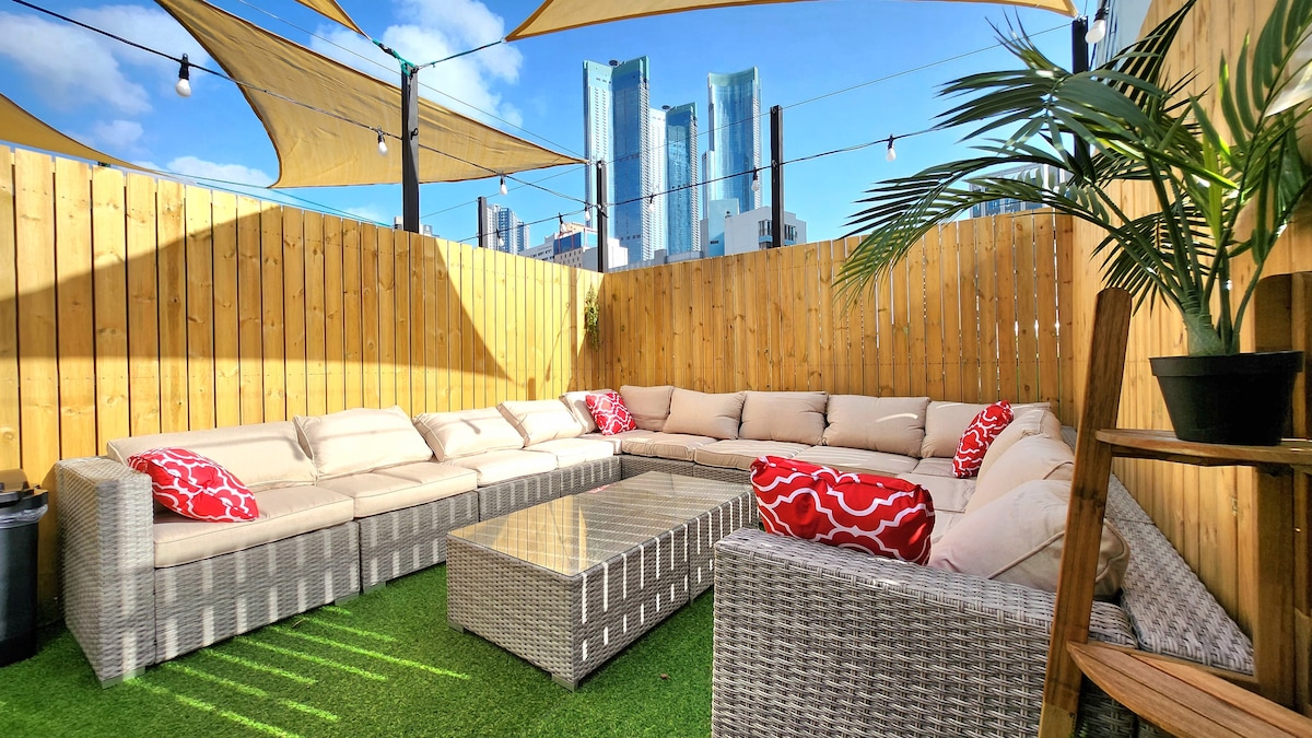 ★Check-in 4PM. Check-out 11PM Location ★★1MIN WALK from Haeundae BEACH ★5MIN WALK from Subway exit#5 ★The Only High grade big size Unit for BBQ and Party in Haeundae Space ★Optimal under 16 PPL ★Free BBQ can, torch, electric Grill & Self bring Charcol, Grill (Buy from Korea mart. 5min walk) ★Private BBQ rooftop★ ★Multiple toilet/multiple shower room for Man/Woman Each ★Floor hear/ Aircon ★Free Wash& Dry Cloth ★WIFI& Netflix & Youtube & Retro Arcade games -Stair Only-